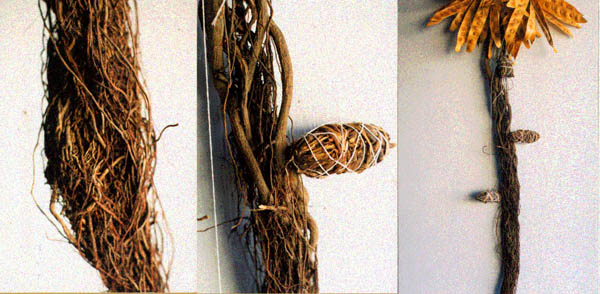 (sculpture containing three medicinal herb bundles)